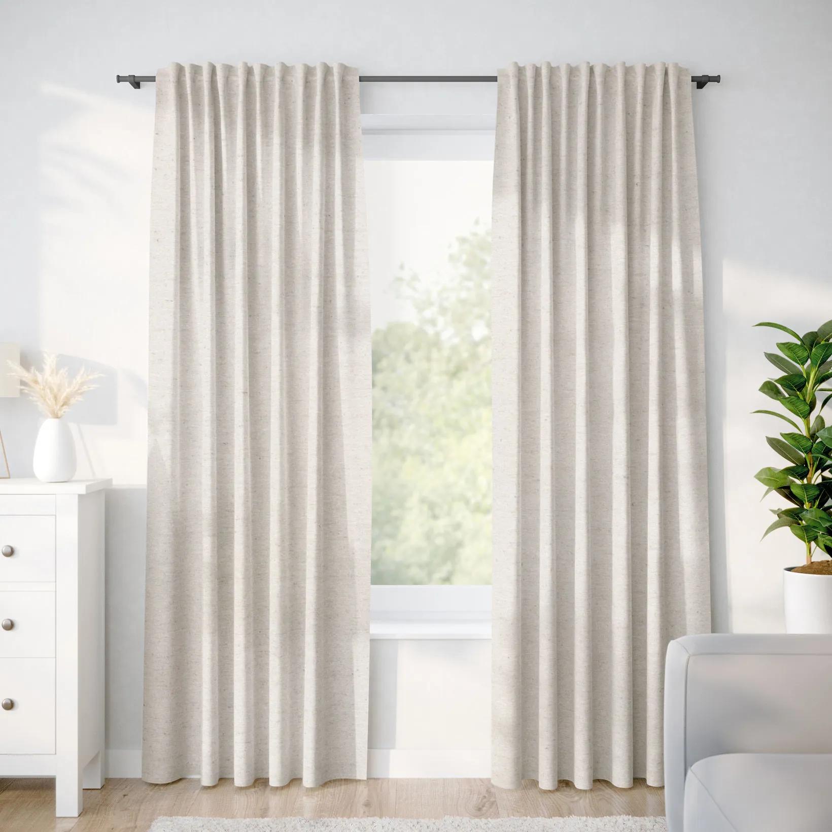 Záves dodávame kompletne obšitý vrátane našitej univerzálnej riasiacej stuhy (šírka 5 cm), vďaka ktorej môžete záves zavesiť na štipce aj na háčiky.