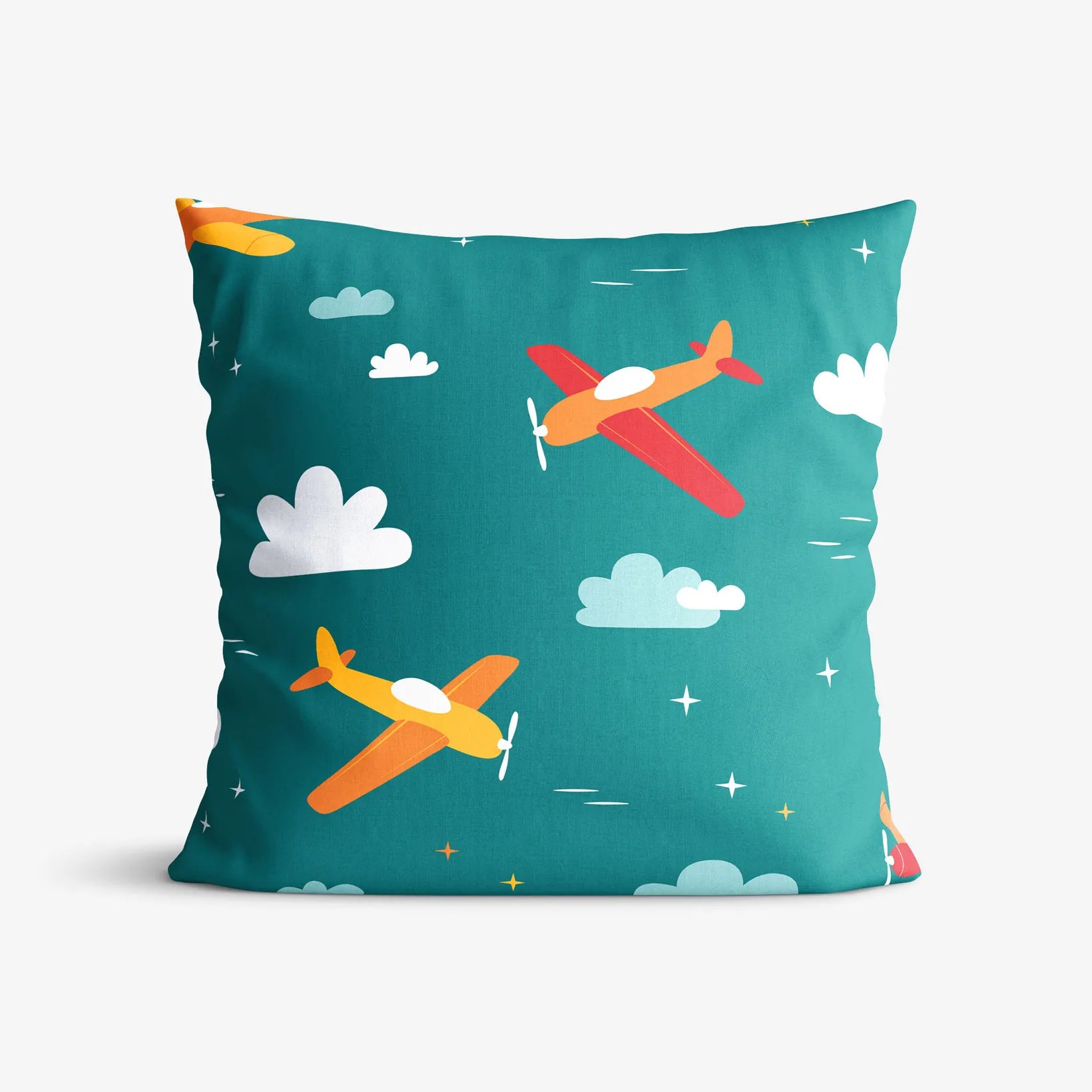 Bavlnená obliečka na vankúš s motívom farebných lietadiel na petrolejovom podklade (z oboch strán rovnaký motív). Obliečka je vyrobená z kvalitnej a príjemnej 100% bavlny. Je vybavená praktickým zapínaním na zips.