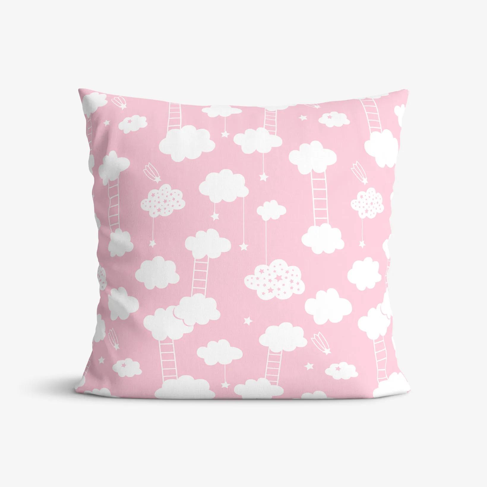 Bavlnená obliečka na vankúš s motívom mráčikov na svetle ružovom podklade (z oboch strán rovnaký motív). Obliečka je vyrobená z kvalitnej a príjemnej 100% bavlny. Je vybavená praktickým zapínaním na zips.