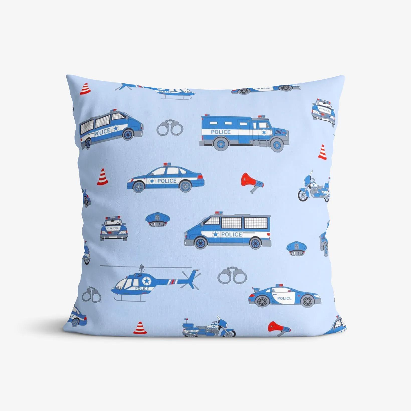 Bavlnená obliečka na vankúš s motívom policajných vozov na svetle modrom podklade (z oboch strán rovnaký motív). Obliečka je vyrobená z kvalitnej a príjemnej 100% bavlny. Je vybavená praktickým zapínaním na zips.