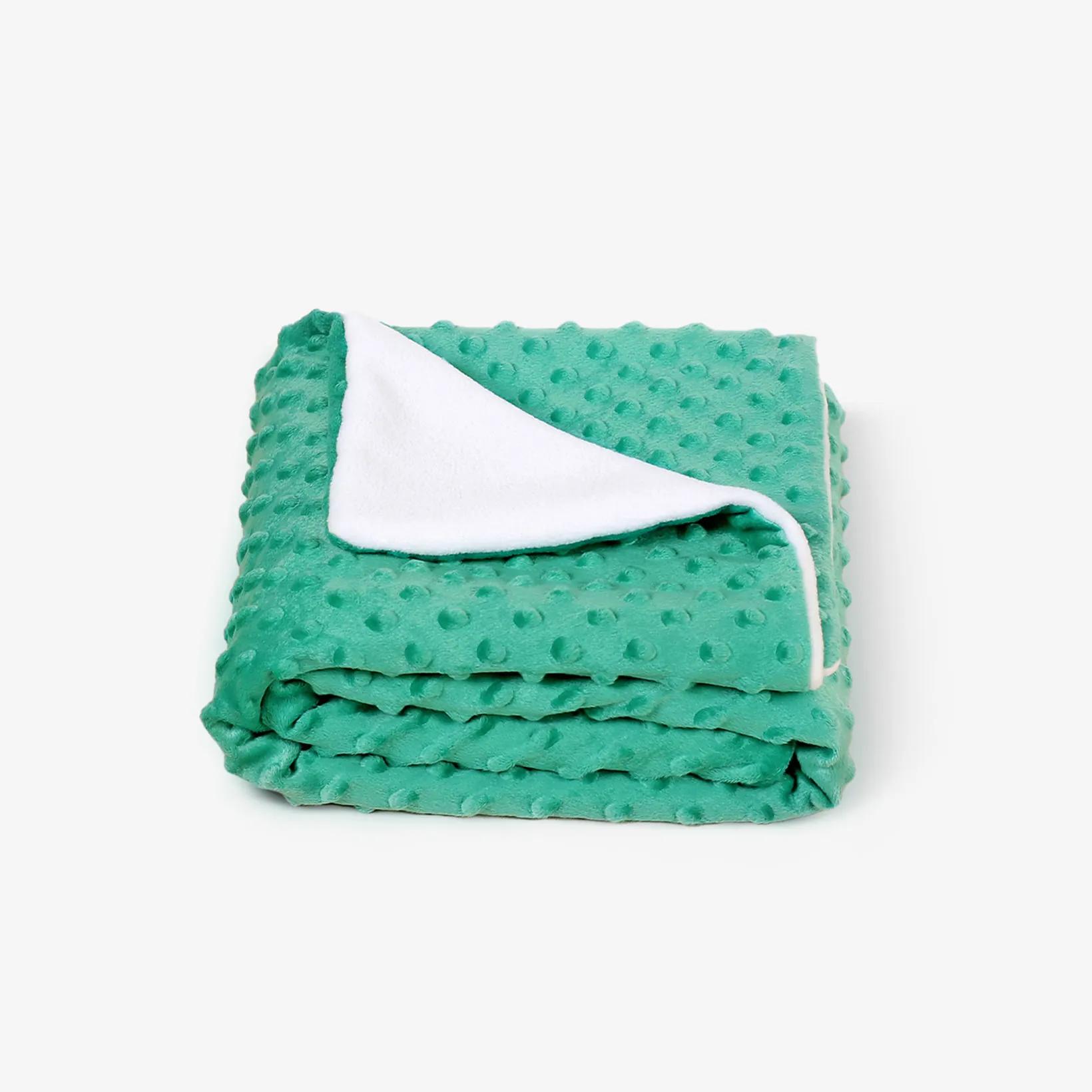 Detská deka Minky (100% polyester) v zelenom prevedení o gramáži 390 g/m2 . Deku Minky Vám ponúkame v rozmere 75×100 cm . Táto deka je kvalitný výrobok, ktorý sa šije v našich šijacích dielňach v Českej republike .