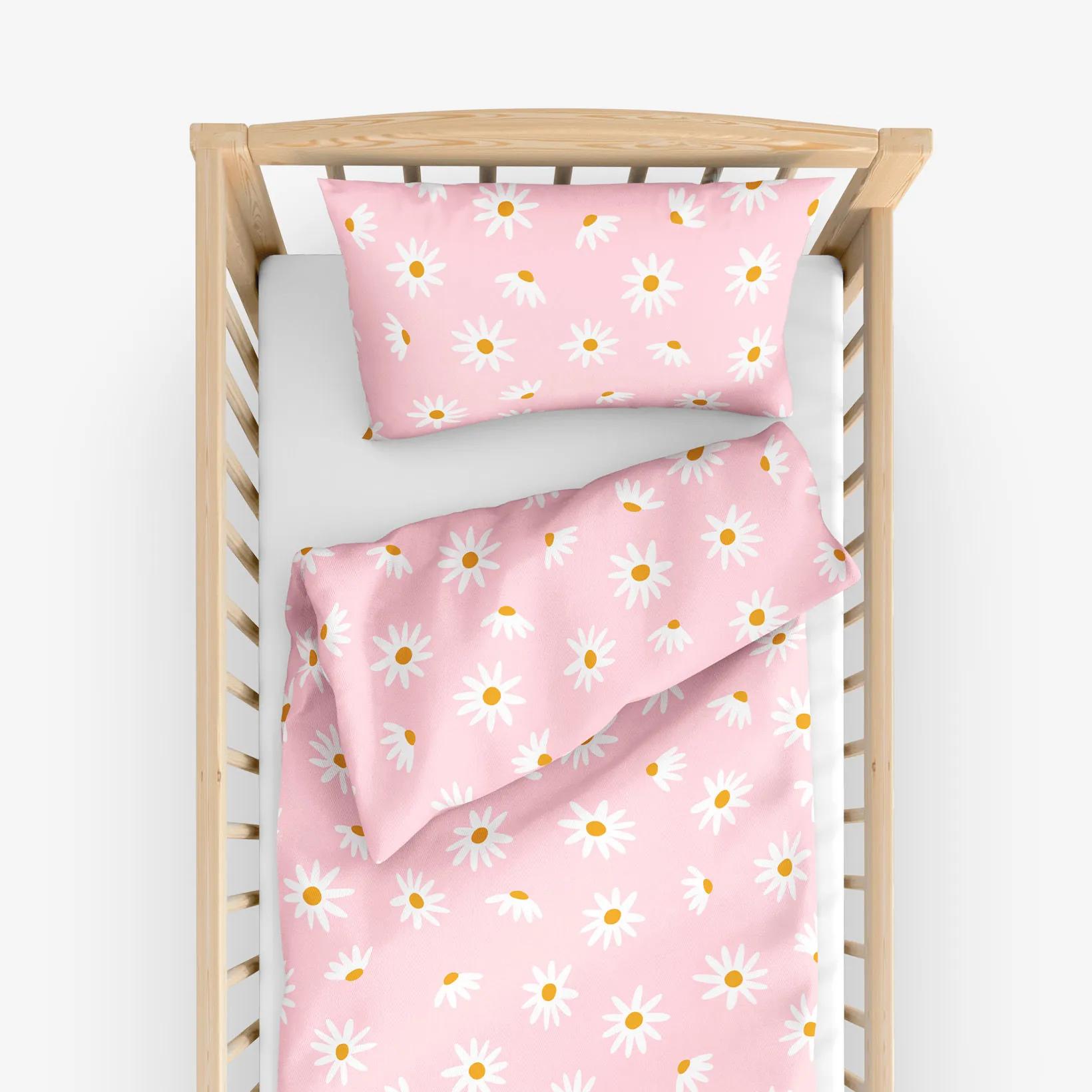 Obliečky s motívom kvetov margarétok vyčarí úsmev na tvári Vašim deťom. Podkladom obliečok je ružová farba. Sú ušité z kvalitnej a hladkej 100% bavlny o gramáži 145 g/m2.