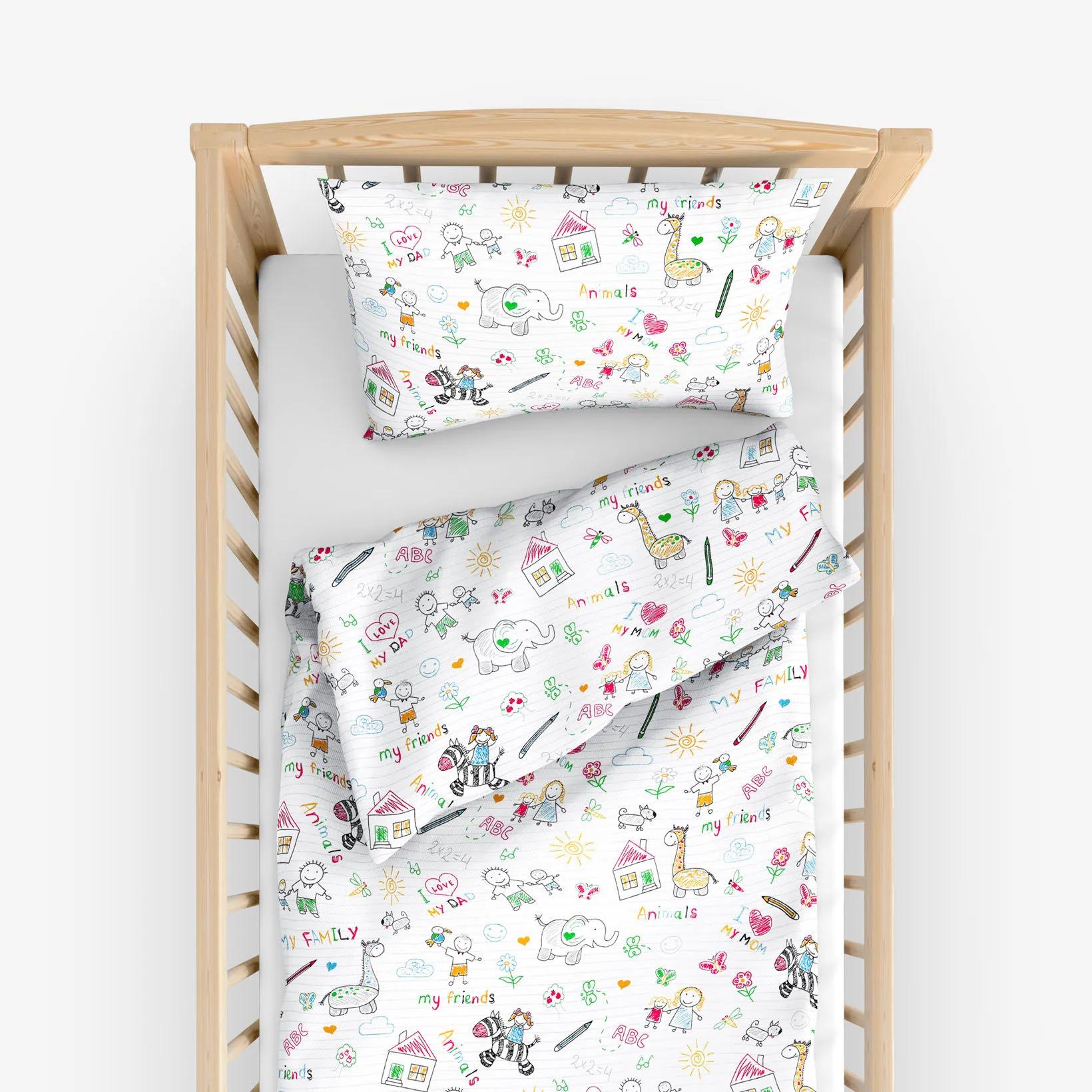 Obliečky do postieľky s kresleným vzorom detských omaľovaniek