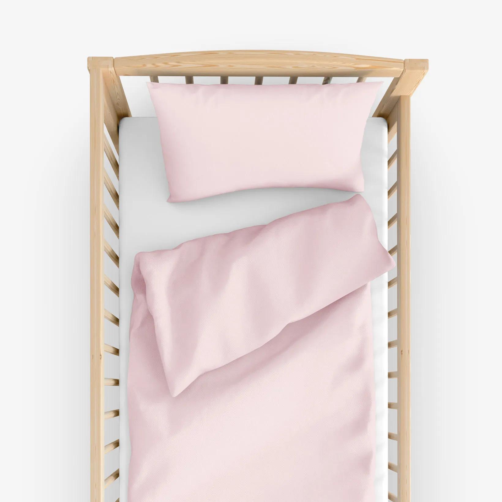 Detské bavlnené obliečky do postieľky v púdrovo ružovom prevedení. Sú ušité z kvalitnej a hladkej 100% bavlny o gramáži 145 g/m2.