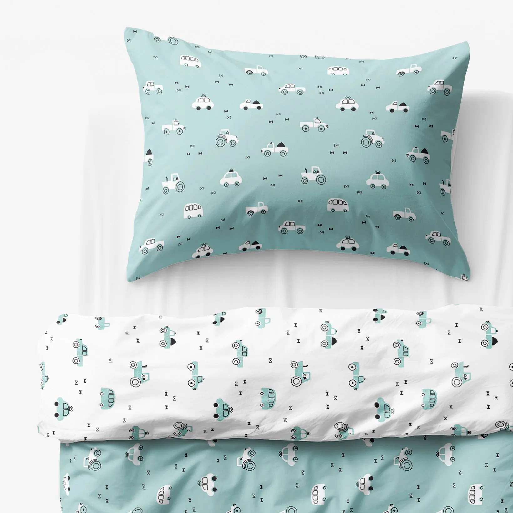 Obojstranné obliečky do postele, ktoré majú z jednej strany motív bielych dopravných prostriedkov na šalviovo zelenom a zo druhej strany motív šalviovo zelených dopravných prostriedkov na bielom, budú tou najlepšou voľbou pre Vaše malé deti. Sú ušité z kvalitnej a hladkej 100% bavlny o gramáži 145 g/m2.
