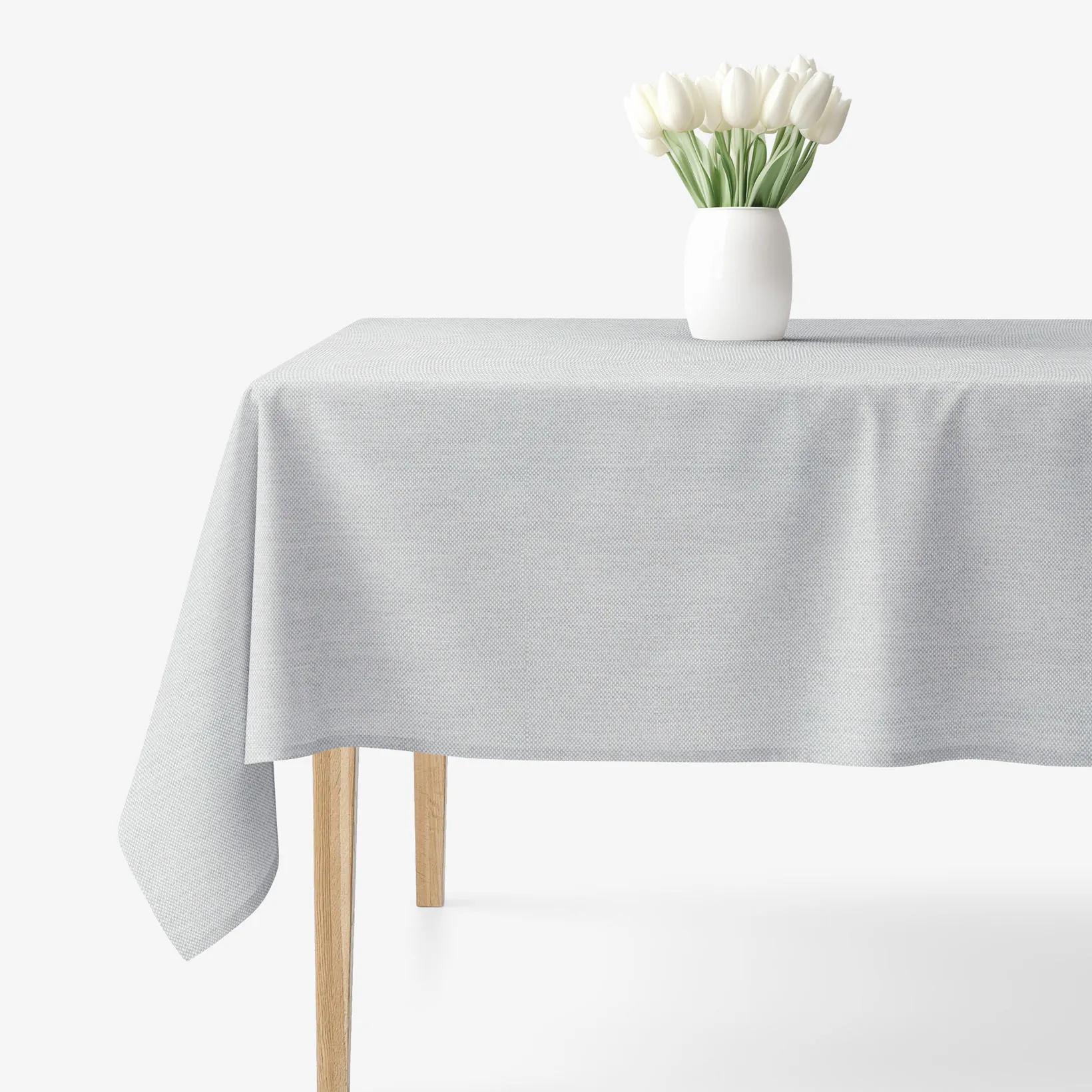 Dekoračný obrus s teflónovou úpravou so vzorom sivého žíhania. Je vyhotovený z dekoračnej látky s teflónovou úpravou zo 100% polyesteru (gramáž 220g/m2). Obrus veľmi dobre drží tvar a hodí sa na akýkoľvek hranatý stôl. Vďaka teflónovej úprave vyliata tekutina nevsiakne do obrusu a zostane len na povrchu vo forme kvapiek. Obrus je odolný voči škvrnám – je ľahko umývateľný. Nečistoty stačí iba zotrieť vlhkou handričkou. Obrus so vzorom sivého žíhania dokonale skrášli Váš interiér.