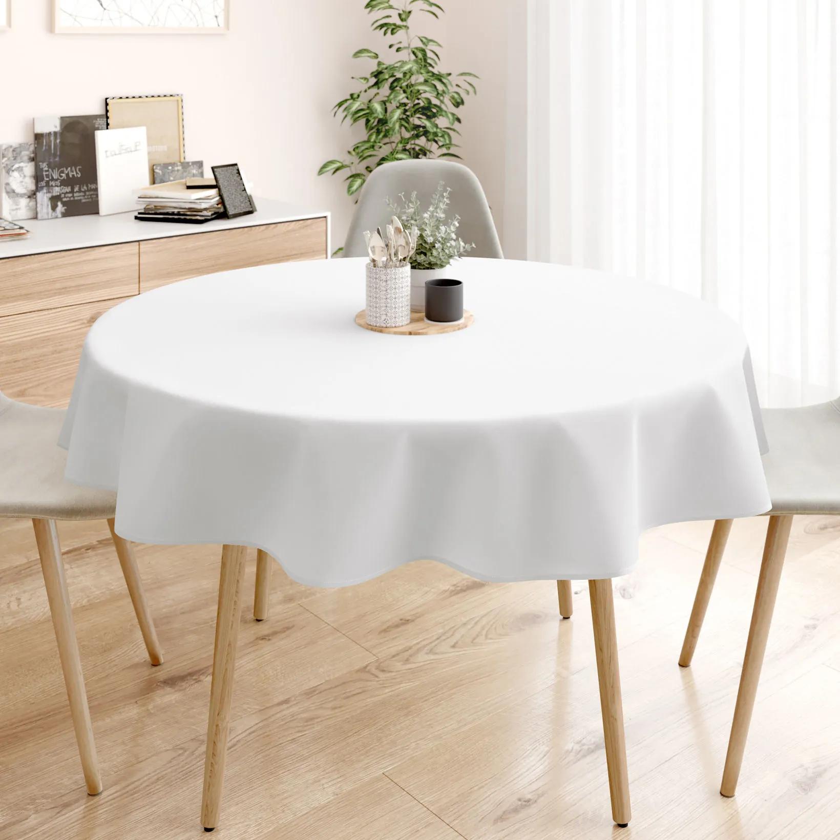Kvalitný dekoračný okrúhly obrus v bielom prevedení. Je vyrobený z veľmi kvalitnej a pevnej španielskej látky Loneta (55% bavlna, 45% polyester). Obrus veľmi dobre drží tvar a hodí sa na akýkoľvek okrúhly stôl. Obrus v bielom prevedení dokonale skrášli Váš interiér.