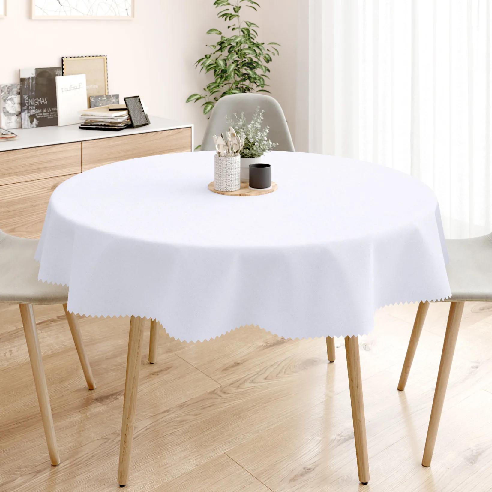 Teflónový okrúhly obrus v bielom prevedení. Je vyhotovený z dekoračnej látky s teflónovou úpravou zo 100% polyesteru (gramáž 170g/m2). Obrus veľmi dobre drží tvar a hodí sa na akýkoľvek okrúhly stôl. Vďaka teflónovej úprave vyliata tekutina nevsiakne do obrusu a zostane len na povrchu vo forme kvapiek. Obrus je odolný voči škvrnám – je ľahko umývateľný. Nečistoty stačí iba zotrieť vlhkou handričkou. Obrus v bielom prevedení dokonale skrášli Váš interiér.