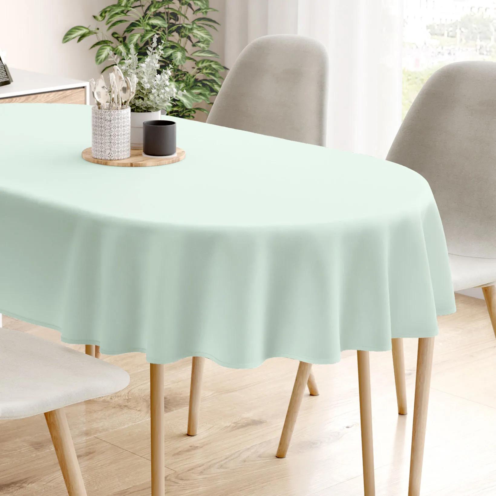 Svetlo mätový oválny obrus vyrobený zo 100% bavlneného plátna o gramáži 145g/m2. Obrus je po celom obvode olemovaný.