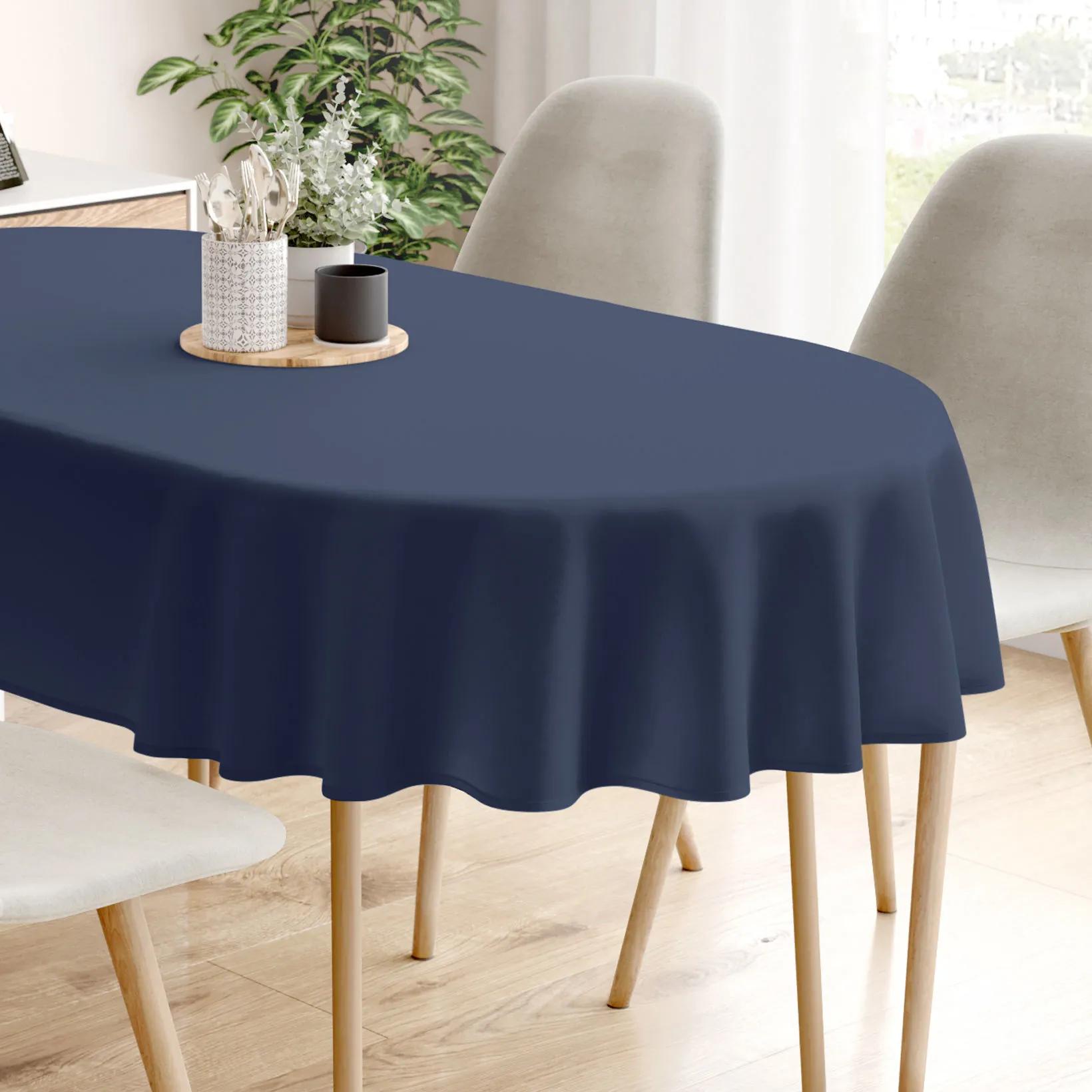Kvalitný dekoračný oválny obrus v atramentovo modrom prevedení. Je vyrobený z veľmi kvalitnej a pevnej španielskej látky Loneta (55% bavlna, 45% polyester). Obrus veľmi dobre drží tvar a hodí sa na akýkoľvek oválny stôl. Obrus v atramentovo modrom prevedení dokonale skrášli Váš interiér.