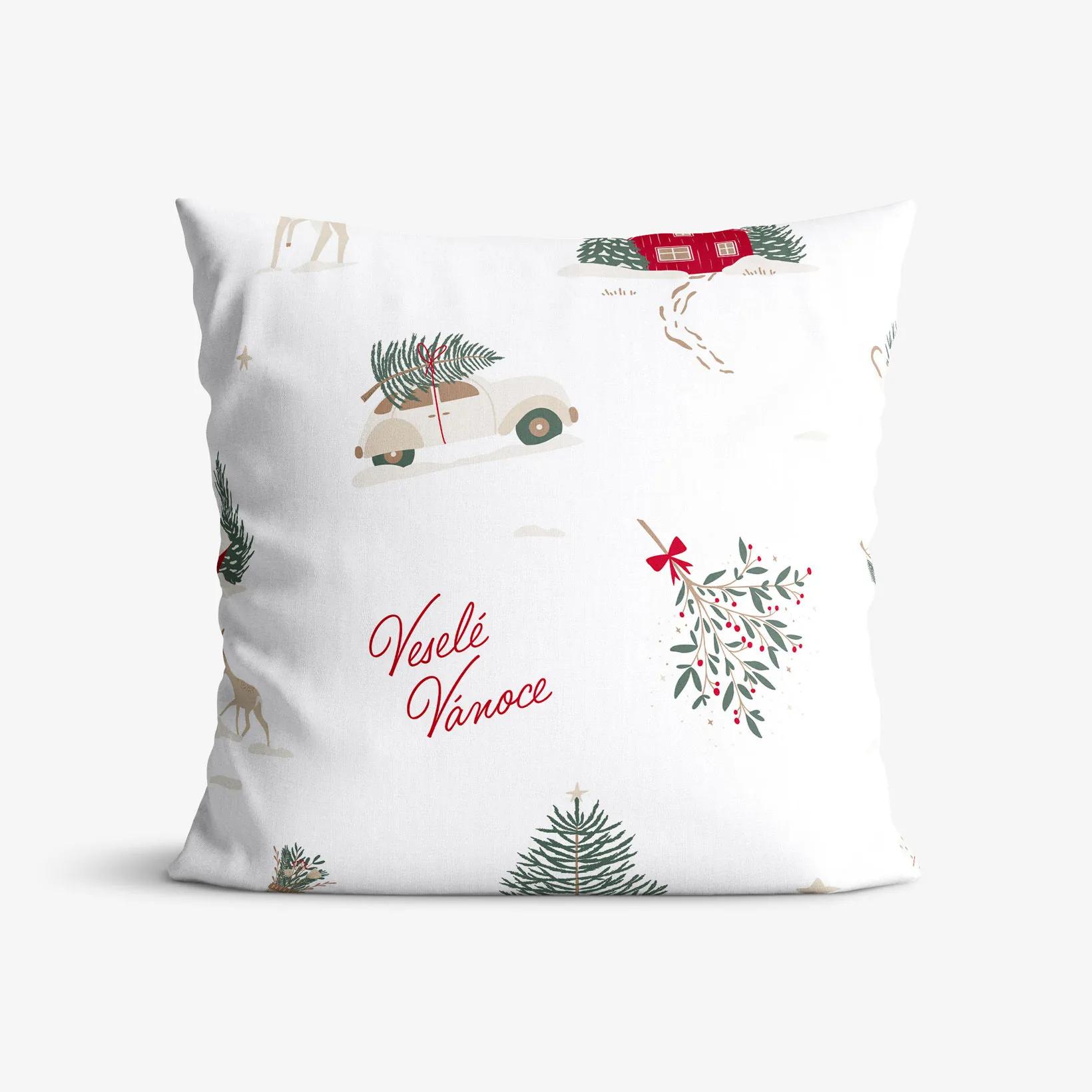 Bavlnená obliečka na vankúš s motívom českých vianočných symbolov na bielom (z oboch strán rovnaký motív). Obliečka je vyrobená z kvalitnej a príjemnej 100% bavlny. Je vybavená praktickým zapínaním na zips.