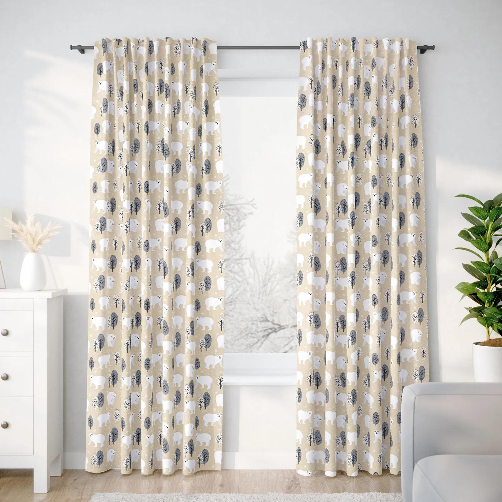 Kusový bavlnený záves s vianočným motívom ľadových medveďov na béžovom. Tento záves šijeme z bavlneného plátna – ľadové medvede o gramáži 145g/m2. Ide o husto tkané plátno zložené zo 100% bavlny. Záves má kvalitný jednostranný potlač a je výhradne určený na dekoračné účely (miestnosť zatieni, ale nezatemní).