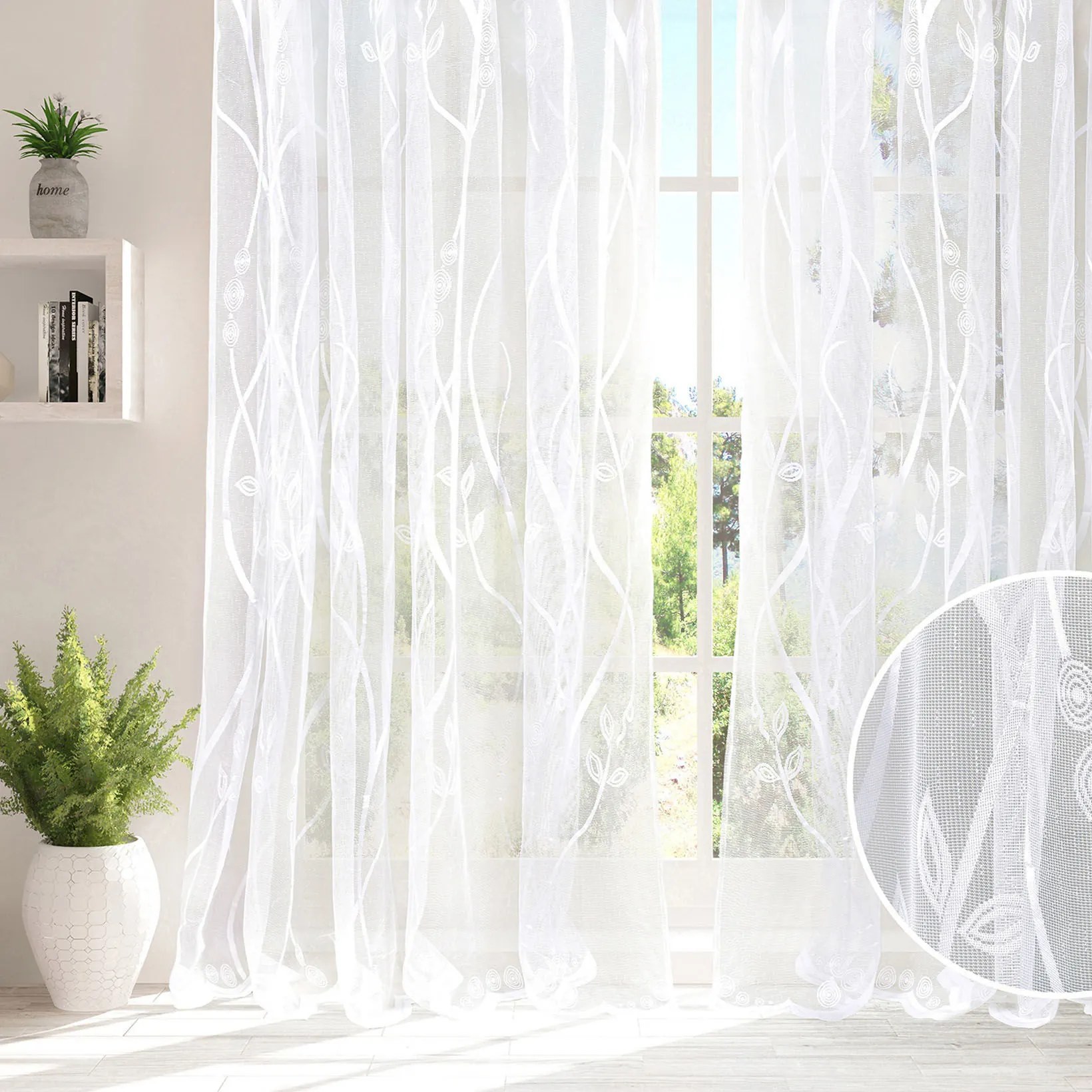 Kvalitná žakárová záclona so vzorom stoniek s listami. Je vyrobená zo 100% polyesterových vlákien.