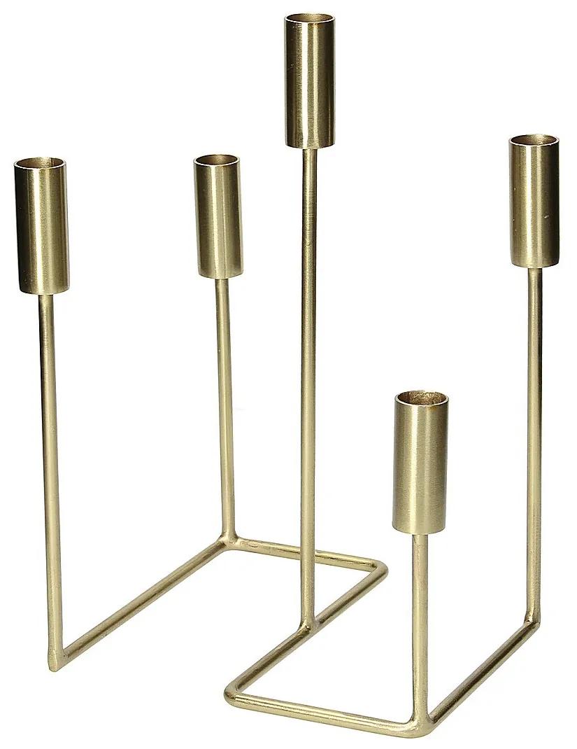Moderný kovový svietnik na päť sviečok.Udržiavaná v módnom farebnom prevedení bude originálnym spôsobom zobrazovať klasické dlhé sviečky.Dokonale sa uplatní v modernistických interiéroch.