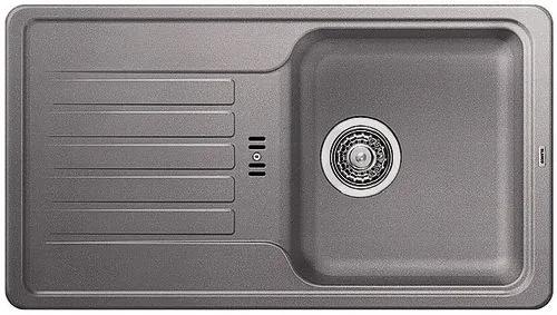 Silgranitový dřez FAVOS mini aluminium od německého výrobce BLANCO jednodřez s odkapovou plochou určen pro horní montáž (usazen na pracovní desku) odkapní plocha s integrovaným odtokem materiál: silgranit odtoková armatura 3 1/2″ bez excentru, sifon s odbočkou na myčku rozměr dřezu: 780 x 435 mm hloubka: 180 mm orientace dřezu: otočný možnost instalace drtiče spodní skříňka: od 450 mm Nepřekonatelně trvanlivý a snadno udržovatelný materiál SILGRANIT PuraDur zaručuje barevným dřezům z kompozitního materiálu dosud nebývalou odolnost. Navíc vyniká antibakteriální ochranou Hygiene+Plus, která dle testů snižuje růst bakterií v průměru o 98%. Kamenně hedvábný povrch propůjčuje dřezu mimořádně dlouhou životnost. I na omak má dřez příjemný povrch, který je výborně odolný proti poškrábání, tepluvzdorný do 280 °C, 100 % hygienicky a zdravotně nezávadný a stálobarevný. Součástí dřezu je kompletní příslušenství k montáži. (výpusť, sifon, příchytky atd.)