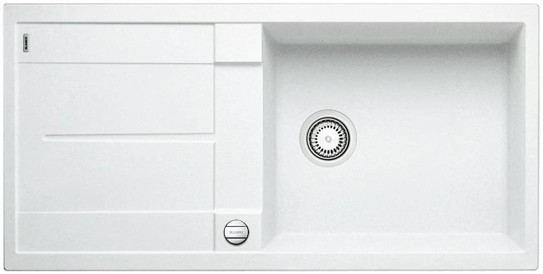 Silgranitový dřez METRA XL 6 S bílá s excentrem od německého výrobce BLANCO extra velký dřez s velkorysou odkapovou plochou určen pro horní montáž (usazen na pracovní desku) designová a funkční odkapní plocha a snížený okraj dřezu pro estetický vzhled materiál: silgranit odtoková armatura 3 1/2″ s excentrem, sifon s odbočkou na myčku rozměr dřezu: 1000 x 500 mm hloubka: 190 mm orientace dřezu: otočný spodní skříňka: od 600 mm s excentrem Nepřekonatelně trvanlivý a snadno udržovatelný materiál SILGRANIT PuraDur zaručuje barevným dřezům z kompozitního materiálu dosud nebývalou odolnost. Navíc vyniká antibakteriální ochranou Hygiene+Plus, která dle testů snižuje růst bakterií v průměru o 98%. Kamenně hedvábný povrch propůjčuje dřezu mimořádně dlouhou životnost. I na omak má dřez příjemný povrch, který je výborně odolný proti poškrábání, tepluvzdorný do 280 °C, 100 % hygienicky a zdravotně nezávadný a stálobarevný. Součástí dřezu je kompletní příslušenství k montáži. (výpusť, sifon, příchytky atd.)