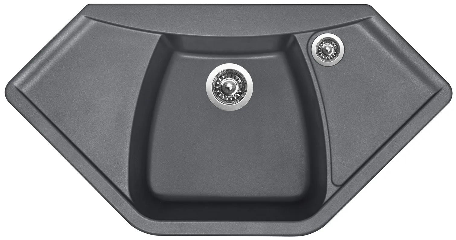 Granitový rohový drez Sinks Naiky 980 vyniká kvalitou použitých materiálov, vďaka čomu je naň poskytovaná predĺžená záruka 10 rokov . Drezy obsahujú 84% jemného kameniva, čo v spojení s kvalitným akrylátovým spojivom zaručuje dokonalú hebkosť, pevnosť a odolnosť materiálu.