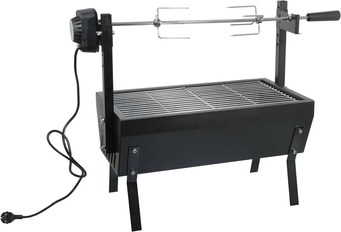 Užite si grilovaciu sezónu naplno. S grilom na drevené uhlie s robustnou konštrukciou a motorom pre otáčanie pokrmov to pôjde ľahko. Gril je vhodný najmä pre grilovanie veľkého množstva mäsitých, ale aj ďalších pokrmov.Konštrukcia z kvalitnej ocele je pokrytá odolnou farbou. Pre samotnú tepelnú prípravu pochutín je gril opatrený dvojdielnym oceľovým roštom s kompletnými rozmermi 56 x 30 cm. V spodnej časti má gril masívne bočné otvory na prúdenie vzduchu. Kovové nohy potom zaisťujú vysokú stabilitu celku. Gril je doplnený výkonným motorom s napájaním na 230 V pre otáčanie mäsa, ako ľavo, tak pravo točivé. Pri každom vypnutí a následnom zapnutí motora sa smer zmení. Vidlice unesú záťaž až 8 kg pokrmov. Pri rýchlosti otáčania je zaistené len to najrovnomernejšie prepečenie.Technické parametre: