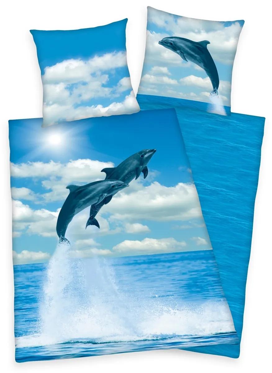 Obliečky, ktoré si aj vy zamilujete na prvý pohľad. Originálne bavlnené obliečky s motívom delfínov budú ozdobou každej izby. Sú vyrobené z príjemnej bavlny, ktorá zaručuje rozmerovú a farebnú stálosť obliečok. Obliečky majú certifikát Öko-Tex Standard 100.Súprava obsahuje: