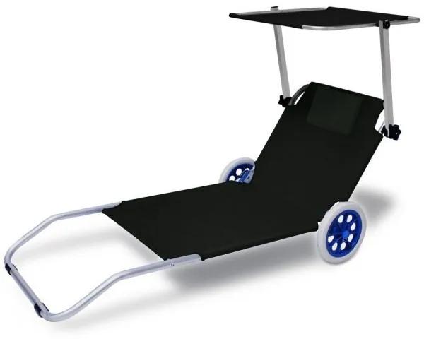 Ideálne na pláži, v záhrade alebo pri bazéne. Skladací a priestorovo úsporný. Toto skladacie lehátko s 2 robustnými kolesami sa ľahko prepravuje a dá sa skladovať, čo šetrí miesto. Lehátko je dodávané aj s nastaviteľným slnečníkom a vankúšom. Textilný poťah je odolný proti roztrhnutiu, možno ho prať a rýchlo schne. Dodatočné zadné vrecko ideálne na uloženie kníh a iných drobností.