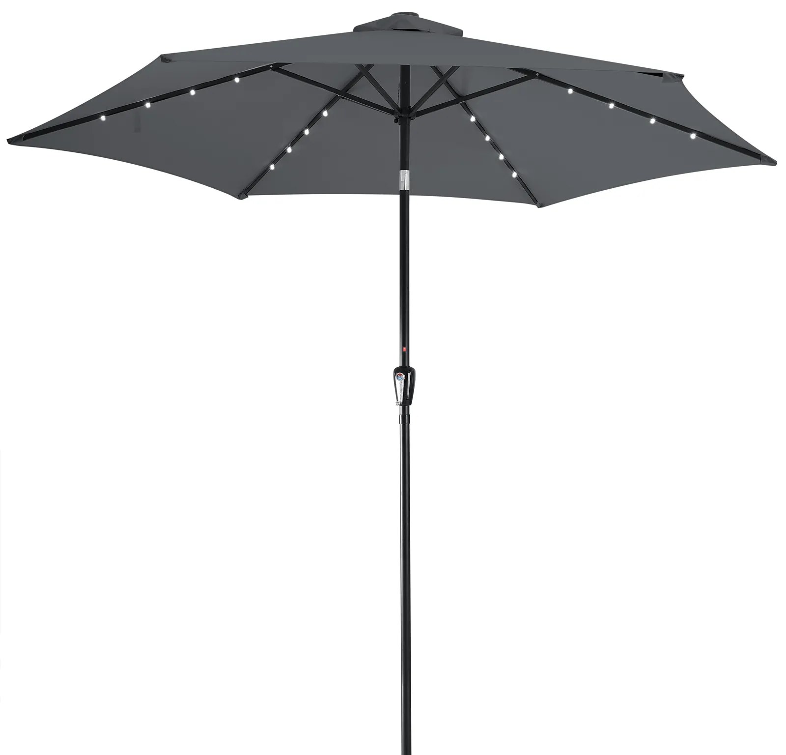 Slnečník sa dá rýchlo otvárať a zatvárať vďaka funkcii hladkej kľuky . Tyč je vyrobená z ľahkého hliníka a dá sa rozložiť na 2 časti pre ľahké skladovanie a prepravu. 24 LED diód poskytuje príjemnú atmosféru. Svetlo je možné ovládať pomocou malého a nenápadného prepínača zapnutia/vypnutia na tyči slnečníka. Slnečník má poťah vyrobený z vodoodpudivej látky, tiež má bočný volán a vrchnú striešku.