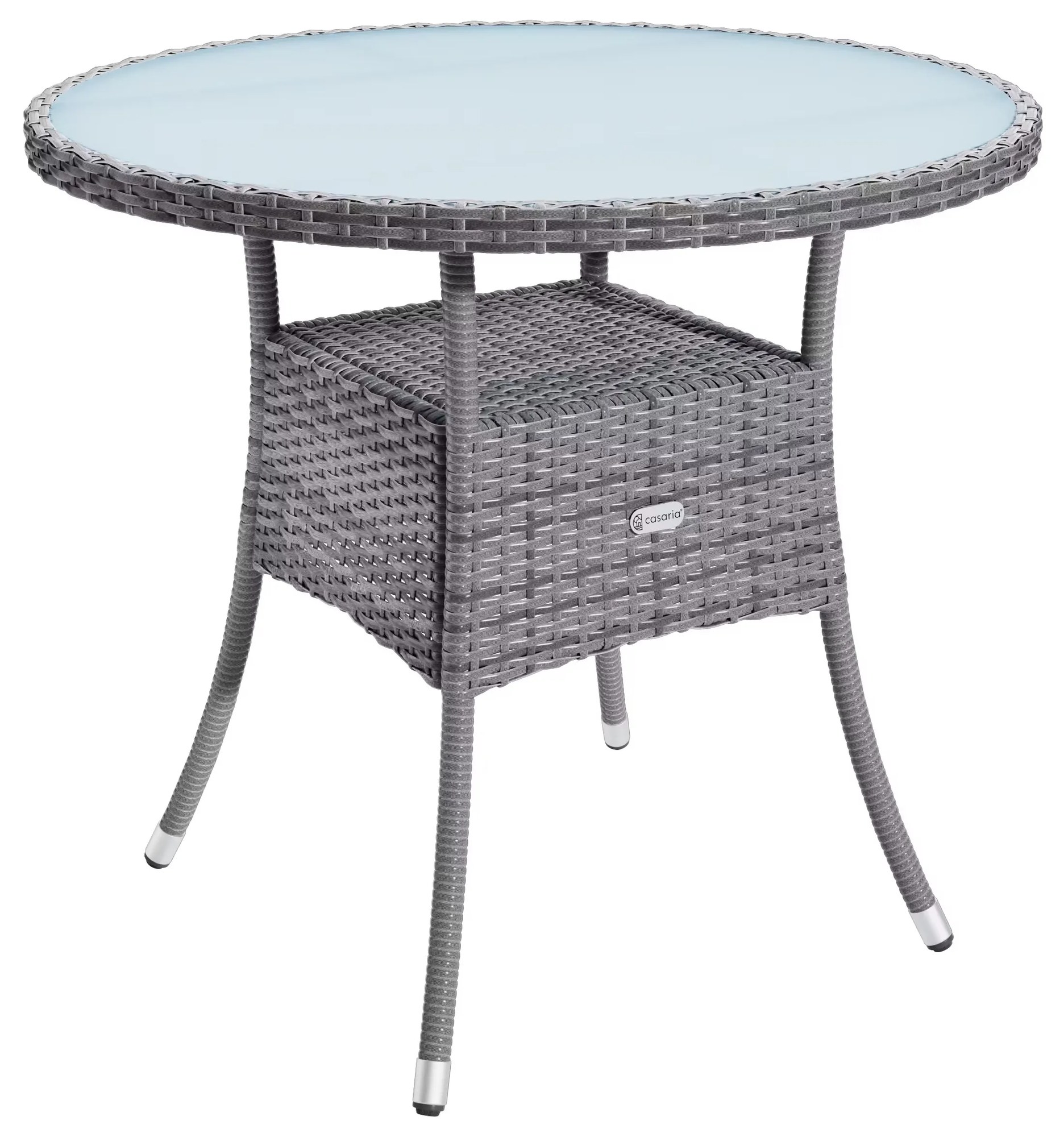 Balkónový stôl je vyrobený z polyratanu a jeho elegantná doska stola z matného skla s priemerom 60 cm ponúka dostatok miesta. Ďalšia polica pod stolovou doskou poskytuje ďalší úložný priestor. Stôl zaujme štýlovým a kompaktným dizajnom, ktorý sa skvele hodí k ostatnému záhradnému nábytku na balkóne, v záhrade alebo na terase. Oceľový rám s práškovým nástrekom robí stôl obzvlášť stabilným a odolným. Výplet z polyratanu, odolného voči poveternostným vplyvom a UV žiareniu , odolá každému počasiu a ľahko sa čistí. Výškovo nastaviteľné hliníkové nožičky je možné individuálne nastaviť pre optimálnu stabilitu. Stôl je možné zostaviť rýchlo a jednoducho v niekoľkých krokoch.