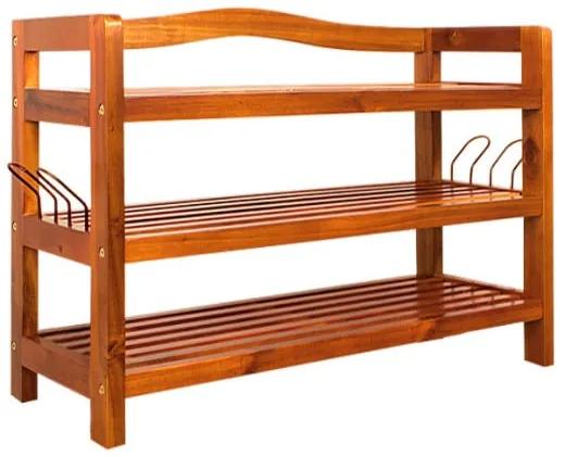 Stojan na topánky vyrobený z pevného agátového dreva s dostatkom priestoru pre vaše topánky. 3 stabilné police a kovové konzoly na boku stojana poskytujú viac priestoru pre vaše topánky. V prípade potreby sa dajú rýchlo a ľahko odstrániť. Využitie ako botník alebo polica na odkladanie rôznych vecí.