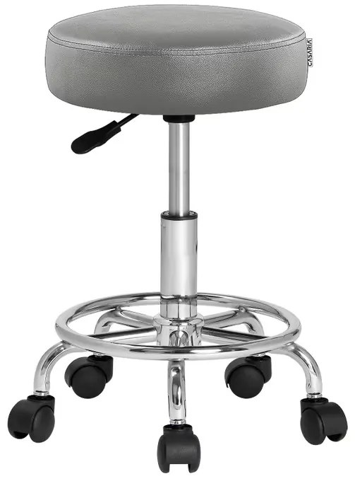 Otočná taburetka ponúka vysoký komfort sedenia a veľkú flexibilitu. Pracovná taburetka je plynule výškovo nastaviteľná a voľne otočná o 360° a má tiež pochrómovanú oceľovú základňu s 5 kolieskami pre optimálnu stabilitu. Ako pohodlná opierka nôh slúži krúžok na nohy z chrómovanej ocele. Podsedák s hrúbkou 10 cm a plynová pružina zaisťujú optimálny komfort sedenia. Poťah taburetky je vyrobený z umelej kože , ktorá sa ľahko udržiava a je odolná. To znamená, že hladký povrch sa dá rýchlo a jednoducho vyčistiť.