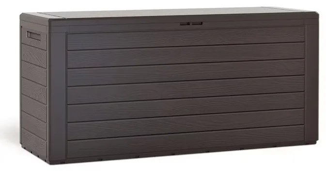 Plastový box s dreveným vzhľadom ponúka odkladací priestor pre podsedáky, vankúše a ďalšie záhradné doplnky. Výklopné veko ktoré sa dá jednoducho otvárať a zatvárať. Box je tiež vybavená úchytmi po bokoch pre lepšiu manipuláciu.