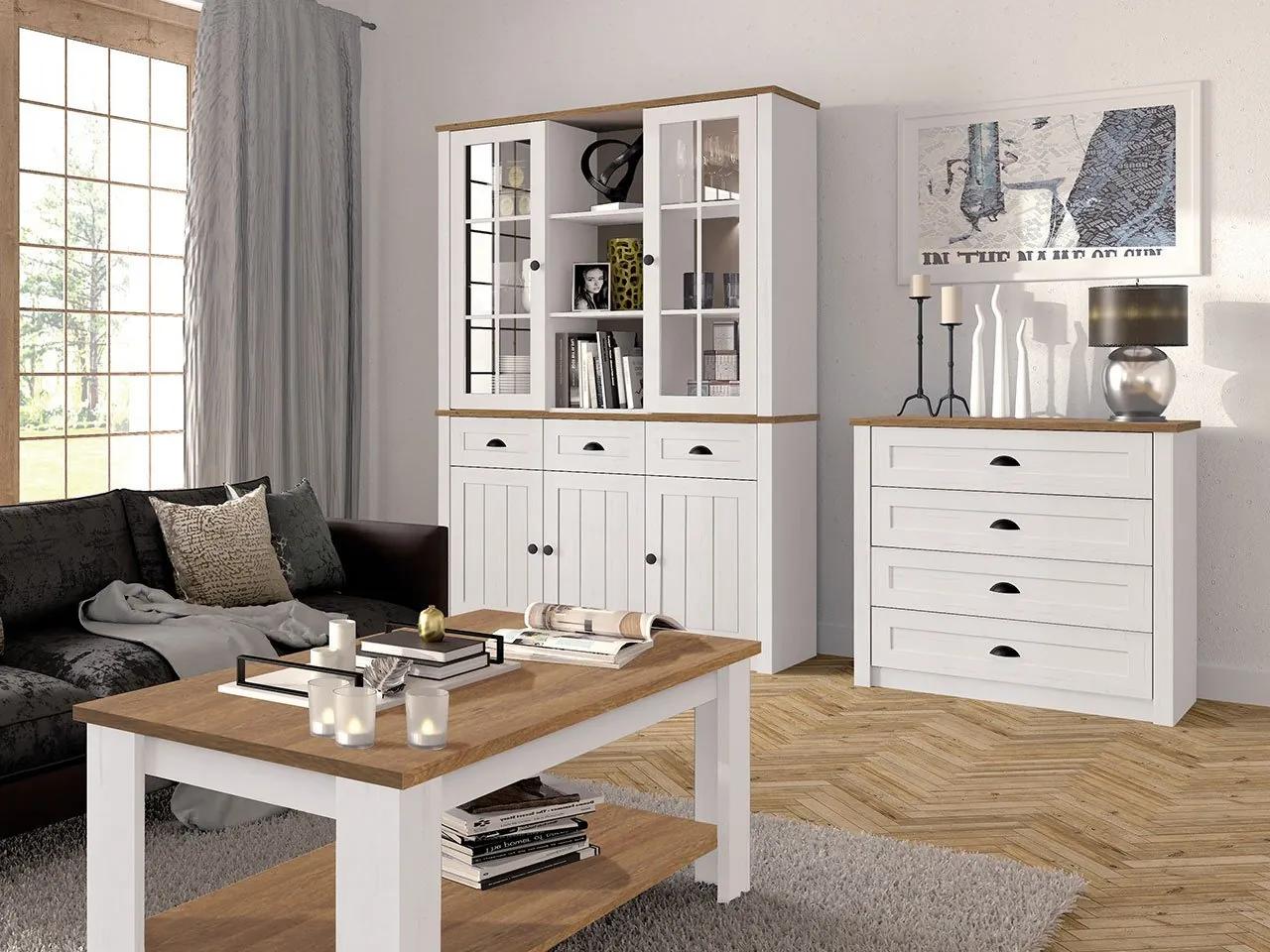 Jemný závan provensálskej sviežosti, ktorý ponúka nábytok do izby Patty II, sa oplatí vniesť do vášho interiéru. Táto súprava poskytuje ľahkosť a krásny, tlmený vzhľad obohatený o jemné úchyty v tvare mušlí.V súprave nájdete dve komody, konferenčny stolík a vitrínu – nadstavec. Prehľadné usporiadanie políc a zásuviek poskytuje dostatok úložného priestoru. Na druhej strane, presklenie a otvorené police poskytujú dokonalý základ pre všetky druhy ozdôb alebo sentimentálnych pamiatok. Komferenčný stolík, ktorý je súčasťou súpravy izbového nábytku, sa výborne hodí ako doplnok k pohovke alebo rohovej sedačke. Jeho vrchná časť je ideálnym miestom na šálku kávy, knihy a podnos so sladkosťami.Rozmery:Komoda Patty K3SP PA04: šírka: 130 cm, výška: 87 cm, hĺbka: 43 cm,Vitrína Patty – nadstavec W2D PA19: šírka: 130 cm, výška: 111 cm, hĺbka: 35 cm,Konferenčný stolík Patty ST2: šírka: 120 cm, výška: 51 cm, hĺbka: 60 cm,Komoda Patty K4:šírka: 88 cm, výška: 87 cm, hĺbka: 43 cmKonštrukcia:15 mm hrubá laminovaná drevotrieska,horná časť: 36 mm laminovaná drevotrieska,MDF lišta,2,5 mm lakovaná doska HDF,lemovanie: ABS dyha,kľučky: dvere – kľučka, zásuvky – mušlovité,nohy: klzáky,jednoduché pánty bez tichého zatvárania,koľajničky s guľôčkovými ložiskami, plné vysunutie,číre sklo,LED osvetlenie ako doplnková možnosť za príplatokZáruka: 24 mesiacov