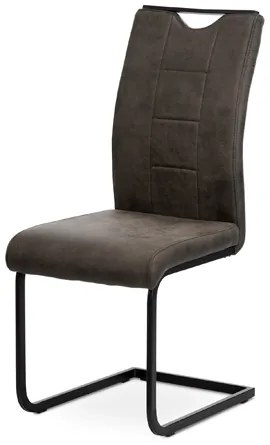Jídelní židle v industriálním stylu. Potah je z šedé látky v trendy dekoru vintage kůže, s H a obvodovým prošitím opěráku i sedáku. Polstrování je z PU pěny. Industriální vzhled podtrhuje kovová pohupová podnož lakovaná černou matnou práškovou barvou. Je obdélníkového průřezu a je opatřena černými plastové kluzáky, které sníží riziko poškození Vaší podlahy na minimum. Pro snazší manipulaci má židle i kovové madlo přes celou horní část opěráku. Nosnost židle je až 110 kg.
