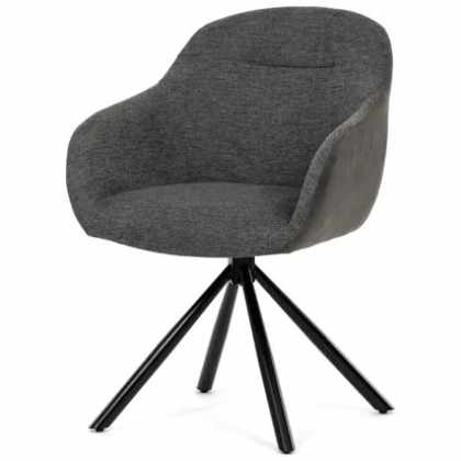 Stolička jedálenská, šedá látka a tmavo šedá látka v dekore vintage kože, čierny kov, otočná P90 ° + L90 ° s vratným mechanizmom – DCH-Y1143 GREY2