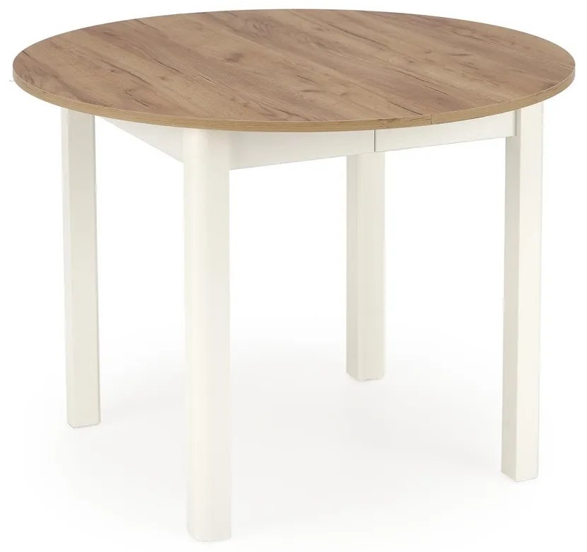 Jedálenský stôl Russell Minimalistický dizajn stola Russell oceníte ako v konzervatívnej, tak i v modernej jedálni. Na praktickosti mu pridá rozkladací mechanizmus. Ten je chytrým riešením do menších jedální, kde občas čakáte návštevy. Doska má v nerozloženom stave tvar kruhu o priemere 102 cm, v prípade potreby ale stôl jednoducho prídavnou doskou predĺžite na 142 cm. Týmito rozmermi je ideálny pre 4-6 osôb. Stôl Russell (varianta dub) v interiéri