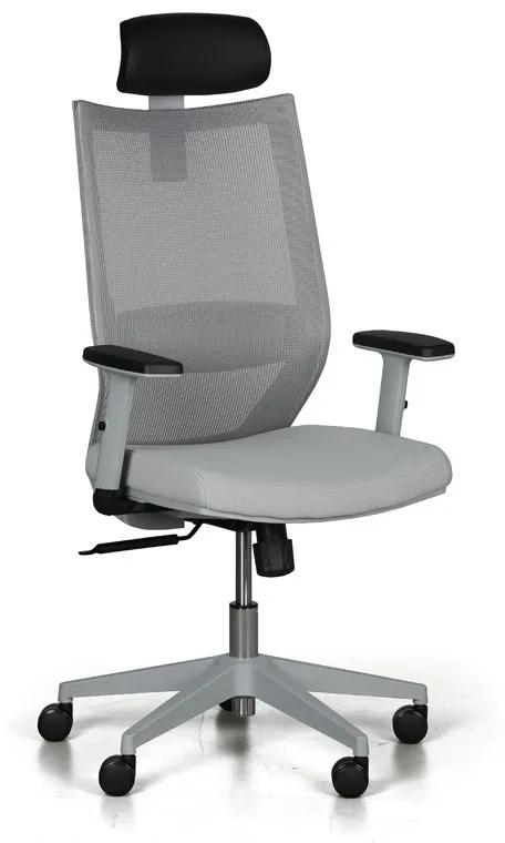 · kancelárska stolička FRANK so sedadlom potiahnutým látkou a operadlom zo sieťoviny · synchrónna mechanika s vynikajúcimi ergonomickými vlastnosťami, ktorá upravuje sklon operadla podľa sklonu sedáku · plastové výškovo nastaviteľné podrúčky s možnosťou nastavenia lakťových opierok nahor a nadol · sedák so šírkou 53 cm a hĺbkou 51 cm, operadlo s výškou 60 cm · hliníkový kríž, nosnosť 150 kg · kolieska na tvrdé podlahy (napr. plávajúce podlahy, dlaždice, betón atď.) · úhlovo a výškovo nastaviteľná hlavová opierka pre ideálnou oporu · výškovo nastaviteľná bedrová opierka pre oporu bedrovej chrbtice