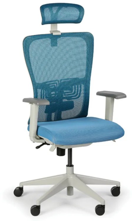 · kancelárska stolička GAM so sedadlom potiahnutým látkou a operadlom zo sieťoviny · mechanika s permanentnym kontaktom s chrbtom pre zdravé sedenie · plastové podrúčky s nastavením výšky a šírky umožňujú nájsť optimálnu polohu rúk a dostatok miesta pre sezenie · sedák so šírkou 52 – 57 cm a hĺbkou 46 – 50 cm, operadlo s výškou 58 cm · oceľový kríž, nosnosť 150 kg · kolieska na tvrdé podlahy (napr. plávajúce podlahy, dlaždice, betón atď.) · výškovo nastaviteľná opierka hlavy · výškovo nastaviteľná bedrová opierka pre oporu bedrovej chrbtice