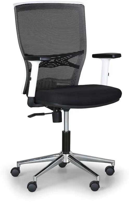 · kancelárska stolička HAAG so sedadlom potiahnutým látkou a operadlom zo sieťoviny · hojdacia mechanika s nastavením protiváhy · plastové výškovo nastaviteľné podrúčky s možnosťou nastavenia lakťových opierok nahor a nadol · sedák so šírkou 43 cm a hĺbkou 48 cm, operadlo s výškou 53 cm · oceľový kríž, nosnosť 150 kg · kolieska na mäkké podlahy (napr. koberce, linoleum atď.)