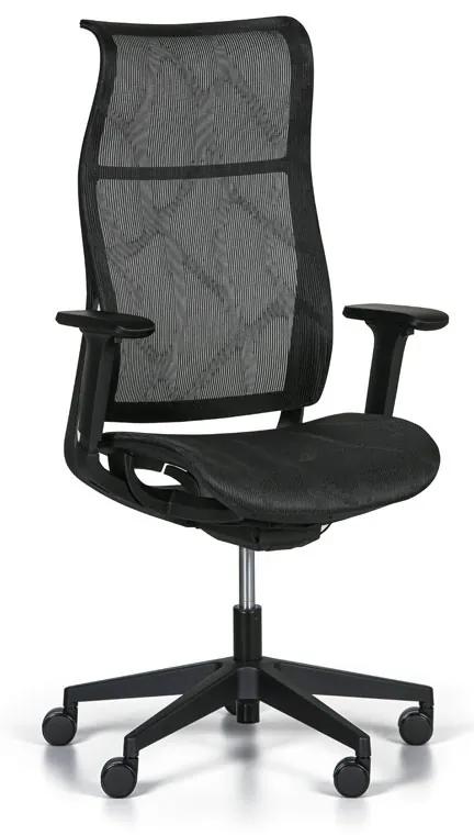 · kancelárska stolička KENNY s priedušným sieťovinovým poťahom · synchrónna mechanika s vynikajúcimi ergonomickými vlastnosťami, ktorá upravuje sklon operadla podľa sklonu sedadla · plastové opierky rúk s nastavením výšky a hĺbky je možné nastaviť hore/dole a posunúť dopredu/dozadu · sedadlo so šírkou 55 cm a hĺbkou 51 cm, operadlo s výškou 72 cm · plastový kríž, nosnosť 150 kg · kolieska na tvrdé podlahy (napr. plávajúce podlahy, dlaždice, betón atď.)