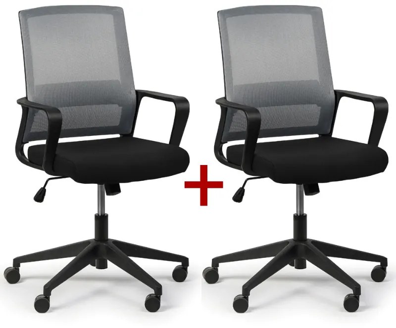 · kancelárska stolička LOW so sedadlom potiahnutým látkou a operadlom zo sieťoviny · hojdacia mechanika s nastavením protiváhy · plastové opierky rúk pre opierku lakťov · sedadlo so šírkou 46 cm a hĺbkou 50 cm, operadlo s výškou 53 cm · plastový kríž, nosnosť 130 kg · kolieska na mäkké podlahy (napr. koberce, linoleum atď.)