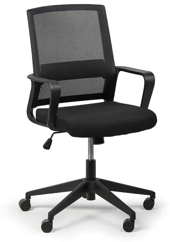 · kancelárska stolička LOW so sedadlom potiahnutým látkou a operadlom zo sieťoviny · hojdacia mechanika s nastavením protiváhy · plastové podrúčky pre opierku lakťov · sedák so šírkou 46 cm a hĺbkou 50 cm, operadlo s výškou 53 cm · plastový kríž, nosnosť 130 kg · kolieska na mäkké podlahy (napr. koberce, linoleum atď.)