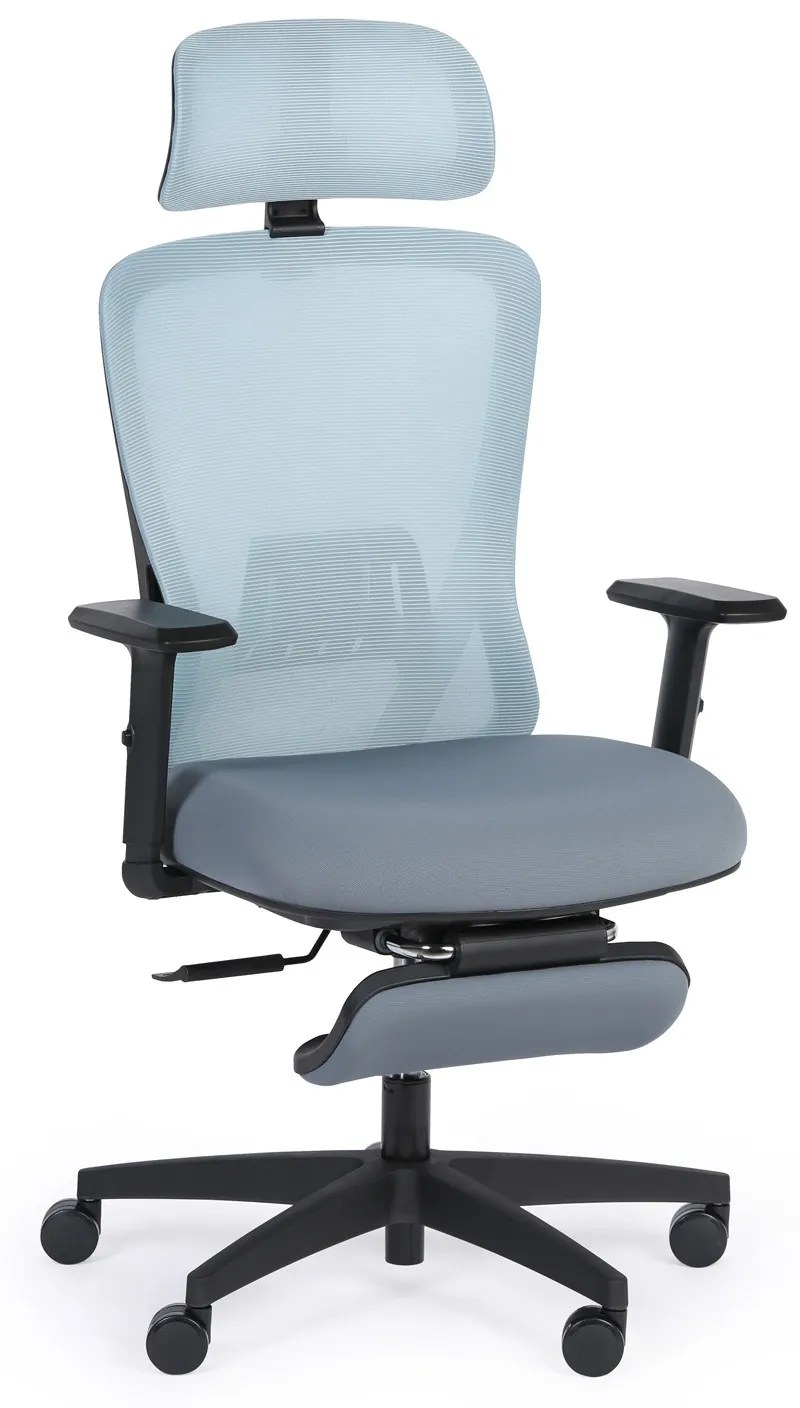 · kancelárska stolička MASTER so sedadlom potiahnutým látkou a operadlom zo sieťoviny · synchrónna mechanika s vynikajúcimi ergonomickými vlastnosťami, ktorá upravuje sklon operadla podľa sklonu sedadla · plastové výškovo nastaviteľné opierky rúk s možnosťou nastavenia lakťových opierok nahor a nadol · sedadlo so šírkou 56 cm a hĺbkou 49 cm, operadlo s výškou 56 cm · plastový kríž, nosnosť 130 kg · kolieska na mäkké podlahy (napr. koberce, linoleum atď.) · úhlovo a výškovo nastaviteľná hlavová opierka pre ideálnou oporu · výškovo nastaviteľná bedrová opierka pre oporu bedrovej chrbtice · výsuvná opierka na nohy