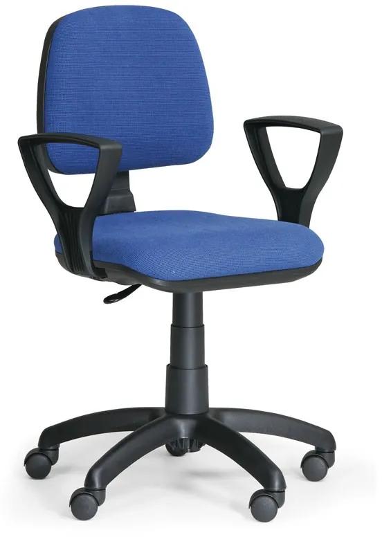· kancelárska stolička MILANO s látkovým čalúnením · mechanika s permanentnym kontaktom s chrbtom pre zdravé sedenie · plastové podrúčky pre opierku lakťov · sedák so šírkou 48 cm a hĺbkou 40 cm, operadlo s nastaviteľnou výškou 42 – 47 cm · plastový kríž, nosnosť 130 kg · kolieska na mäkké podlahy (napr. koberce, linoleum atď.)