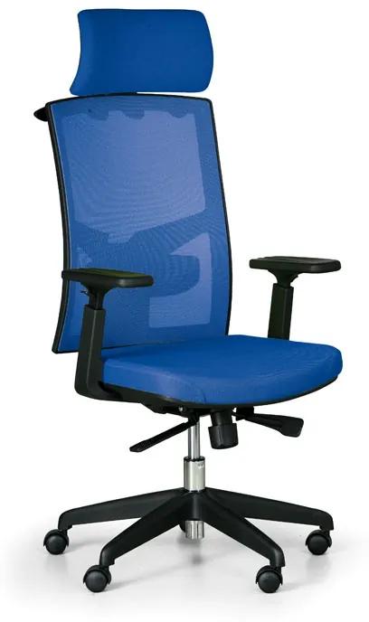 · kancelárska stolička NBA so sedadlom potiahnutým látkou a operadlom zo sieťoviny · synchrónna mechanika s vynikajúcimi ergonomickými vlastnosťami, ktorá upravuje sklon operadla podľa sklonu sedadla · najmodernejšie plastové 3D opierky rúk s nastavením výšky, hĺbky a rotácie · sedadlo so šírkou 46 cm a hĺbkou 48 cm, operadlo s nastaviteľnou výškou 60 – 65 cm · plastový kríž, nosnosť 150 kg · kolieska na mäkké podlahy (napr. koberce, linoleum atď.) · opierka hlavy slúži ako prijemná opora hlavy, krku a krčnej chrbtice · výškovo nastaviteľná bedrová opierka na oporu bedrovej chrbtice