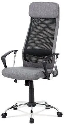 Kancelárska stolička radu Basic s vysokým operadlom a polstrovanou hlavovou opierkou. Poťah je zo šedej jemne hrubej látky v kombinácii s čiernou sieťovinou MESH. Výplň je z kvalitnej PU peny. Stolička je vybavená hojdacím mechanizmom s nastavením protiváhy a aretáciou v základnej polohe. Tuhosť protiváhy je možné regulovať veľkou plastovou skrutkou, umiestnenou pod sedákom. Výška sedenia sa upravuje páčkou na pravej strane cez kvalitný plynový piest. Podrúčky sú čierne plastové s kovovými chrómovými vzperami. Šírka podrúčiek je 5 cm, dĺžka ložnej plochy je 34 cm, čo je úplne dostačujúce pre pohodlné opretie rúk. Kríž je kovový s priemerom 72 cm, s chrómovanou povrchovou úpravou. Jednotlivé lúče sú skrutkované k centrálnemu nosníku s piestom. Kolieska sú plastové, určené na koberce. Operadlo má kovovú konštrukciu, je ergonomicky tvarované a dokonale priedušné, čo oceníte v horúcich dňoch alebo pri dlhom sedení. Nosnosť stoličky je až 120 kg. Spracovanie a použité materiály predurčujú túto stoličku nielen ku kancelárskej činnosti, ale aj krátkemu relaxu počas práce – môžete sa hojdať, alebo využiť jej maximálny výklop. Rovnako ako u jej menšej kolegyne KA-V204 a KA-V202 je v ideálnom pomere cena/použitie/kvalita.