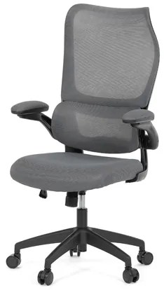 Moderní kancelářská židle Autronic v elegantní šedé barvě je perfektní volbou pro jakýkoliv pracovní prostor. Díky houpací mechanice nabízí optimální podporu při dlouhém sezení, což je ideální pro každodenní používání. Pro ještě větší pohodlí má židle integrovanou opěrku hlavy a nastavitelný přítlak bederní opěrky, což výrazně zlepšuje ergonomii. Čalouněné područky s možností odklápění zajišťují flexibilitu při práci. Kovový kříž s kolečky na tvrdé povrchy dodává židli stabilitu a dlouhou životnost. Stylový design skvěle doplní jak moderní, tak i tradiční kanceláře.