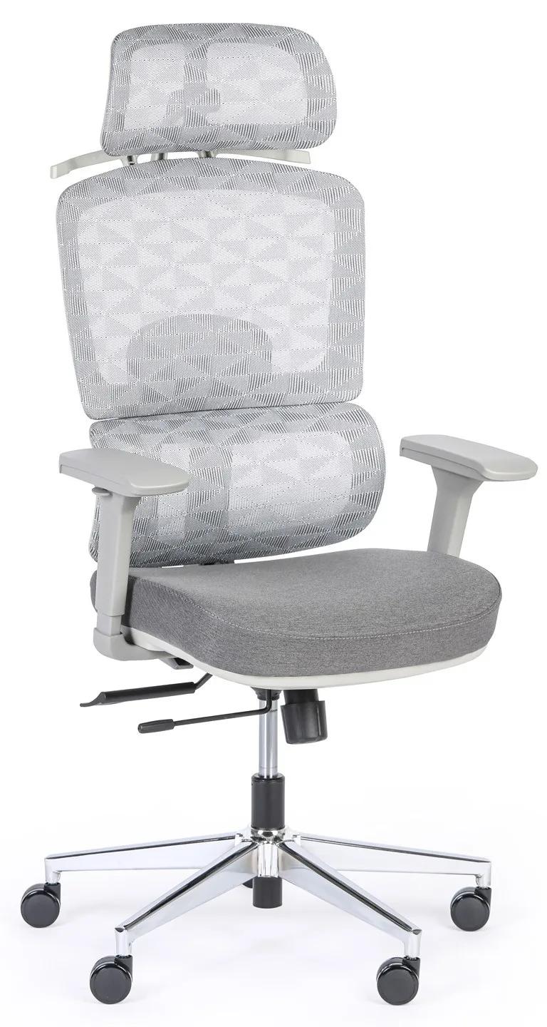 · kancelárska stolička TERRY so sedadlom potiahnutým látkou a operadlom zo sieťoviny · synchrónna mechanika s vynikajúcimi ergonomickými vlastnosťami, ktorá upravuje sklon operadla podľa sklonu sedáku · najmodernejšie plastové 3D podrúčky s nastavením výšky, hĺbky a rotácie · sedák so šírkou 52 cm a hĺbkou 45 – 50 cm, operadlo s výškou 61 – 67 cm · oceľový kríž, nosnosť 150 kg · kolieska na tvrdé podlahy (napr. plávajúce podlahy, dlaždice, betón atď.) · úhlovo a výškovo nastaviteľná hlavová opierka pre ideálnou oporu · pevná bedrová opierka pre oporu bedrovej chrbtice