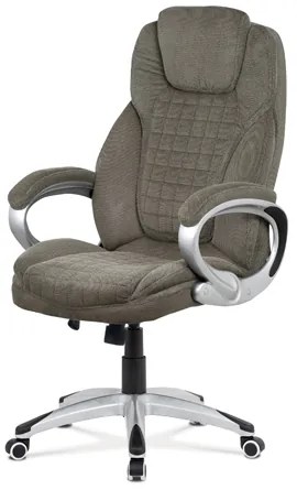 Moderná kancelárska stolička potiahnutá pololesklou šedou látkou vzor pepito. Vďaka ultra pohodlnému sedáku a operadlu s výnimočným polstrovaním, ktoré sú štýlovo tvarované, s elegantným prešitím a so super mäkkým podhlavníkom sa budete cítiť ako v business class najlepšej leteckej spoločnosti. Ruky si môžete pohodlne oprieť o pevné plastové podrúčky šedej farby s čiernymi plastovými doplnkami a polstrovaním potiahnutým extra jemnou látkou. Stolička má tiež aj ľahko umývateľný, tvrdený, plastový kríž striebornej farby s čiernymi protišmykovými prvkami a plastovými kolieskami vhodnými na tvrdé typy podláh (dlažba, parkety, plávajúce podlahy a pod.). Je výškovo nastaviteľná, s hojdacím mechanizmom a prednou skrutkou upravujúcou tuhosť pohupu a jej nosnosť je až 120 kg. Látku čistiť výhradne šampónovaním bežnými čistiacimi prostriedkami za použitia mäkkého materiálu (hubka, handrička). Nečistiť hrubými materiálmi (kefa, apod.). Nikdy nepoužívať chemické rozpúšťadlá. Látku nevystavujte priamemu slnečnému žiareniu. Všetky nečistoty treba odstraňovať ihneď po zašpinení. Neskorom čistením sa úspešnosť zákroku výrazne znižuje. Látku nevystavujte priamemu slnečnému žiareniu.