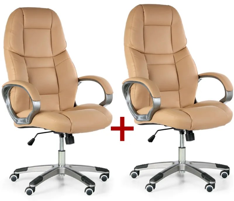 · kancelárske kreslo KEVIN s poťahom z EKO kože · hojdacia mechanika s nastavením protiváhy · čalúnené opierky rúk pre opierku lakťov · sedadlo so šírkou 53 cm a hĺbkou 51 cm, operadlo s výškou 73 cm · plastový kríž, nosnosť 150 kg · kolieska na tvrdé podlahy (napr. plávajúce podlahy, dlaždice, betón atď.)