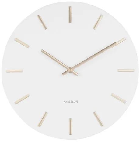 Dizajnové nástenné hodiny značky Karlsson budú vďaka svojmu čistému minimalistickému dizajnu skvelým doplnkom každého interiéru. Dobre čitateľný ciferník v bielom prevedení s kovovými indexmi a ručičkami nerušia žiadne vzory ani číslice. Hodiny poháňa quartzový strojček na batériu.