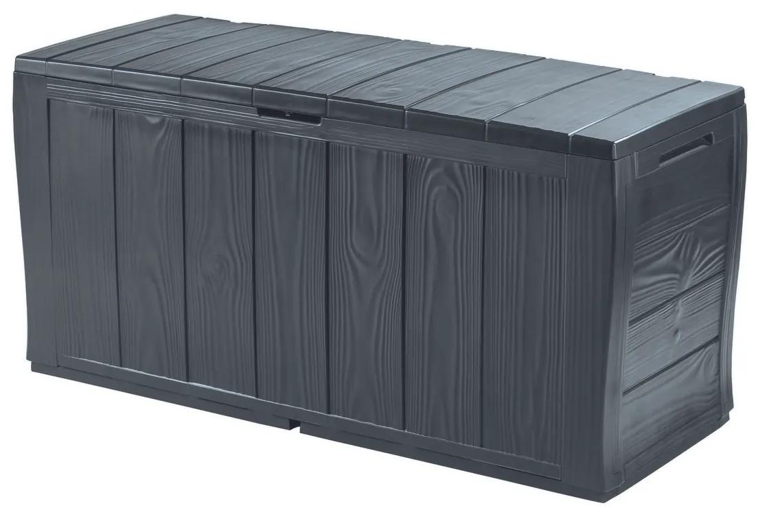 Jednoduchosť tvaru a rýchla montáž sú hlavnými prednosťami tohto boxu, určeného na uskladnenie najrôznejšieho náradia, ako sú lopaty, zavlažovače, nožnice a iné. Klasická farba a povrch pripomínajúci drevenú textúru sa hodí k akémukoľvek záhradnému nábytku a ďalším doplnkom.