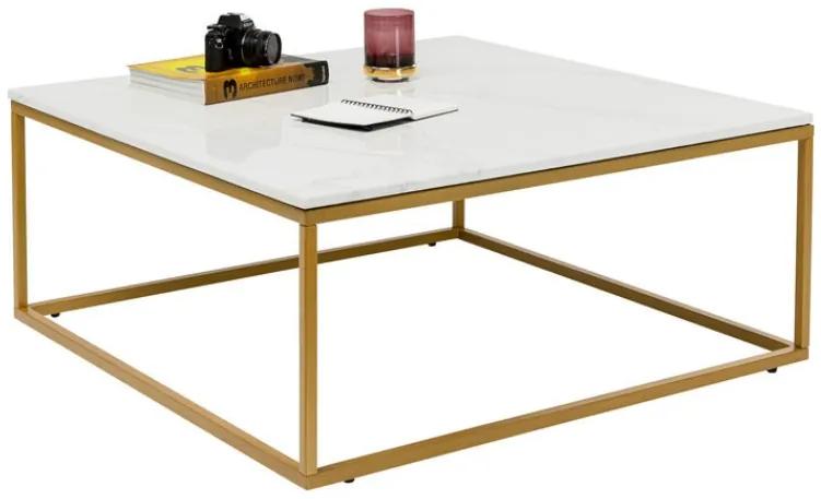 Elegantný konferenčný stôl v zlatej farbe so stolovou doskou vo vzhľade bieleho mramoru.